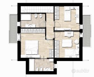 In una zona tranquilla e riservata di Origgio, a ridosso dell'ufficio postale e della piazza del mercato, vicino alla pista ciclabile, proponiamo ultima villa unifamiliare di testa in piccolo e signorile residence senza spese condominiali. La villa in classe energetica A4, avrà tutti i confort abitativi : impianto fotovoltaico, ventilazione meccanica, pannelli solari per produzione acqua calda, predisposizione aria condizionata e antifurto, riscaldamento a pavimento, tetto non in legno, serramenti di ultima generazione, tapparelle motorizzate, ecc. La ville sarà cosi composta: al piano terreno soggiorno, cucina abitabile e bagno; al piano primo 3 camere tutte abitabili, doppi servizi e 2 balcon; al piano seminterrato ampia taverna con ilocale lavanderia. A completare la soluzione box doppio in larghezza di circa 30 mq. e 2 posti auto. Giardino privato su 3 lati. Ottimo capitolato, finiture signorili. Consegna 18 mesi..