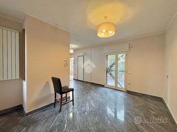 Completa la soluzione un generoso spazio esterno privato con doppio ingresso pedonale e sistema di irrigazione automatico per la cura del giardino.