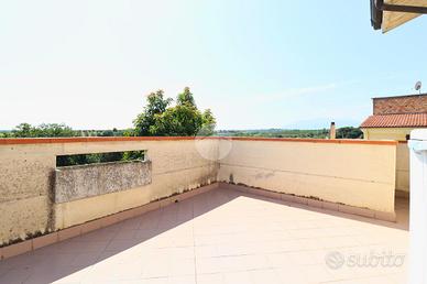 Il piano superiore è dedicato alla zona notte e ospita due camere da letto luminose, entrambe dotate di affacci esterni. Il bagno principale, spazioso e finestrato, è dotato di vasca e si caratterizza per la sua luminosità e comodità. A completare il piano, un terrazzo che avvolge l'abitazione, offrendo piacevoli scorci e continuità con l'esterno.