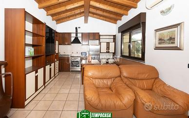 Al PIANO RIALZATO l'ingresso si apre su un comodo PORTICO che conduce alla zona giorno composta da un LUMINOSO soggiorno, un'ampia cucina ABITABILE e una pratica lavanderia con accesso diretto al portico esterno. Il disimpegno porta alla zona notte dove troviamo un AMPIO bagno con VASCA, una grande camera matrimoniale e un pratico ripostiglio.
