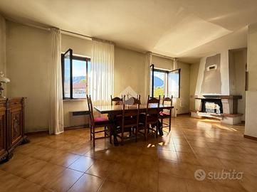 Ampio e luminoso soggiorno con camino caratteristico e accesso diretto al giardino