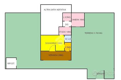 All'esterno, un terreno di circa 3.700 mq, adornato da ulivi e piante ornamentali, regala un'atmosfera di quiete e privacy. Un piazzale introduce alla veranda coperta, perfetta per godersi il silenzio delle sere estive o la luce del mattino.