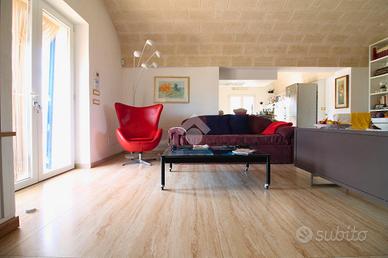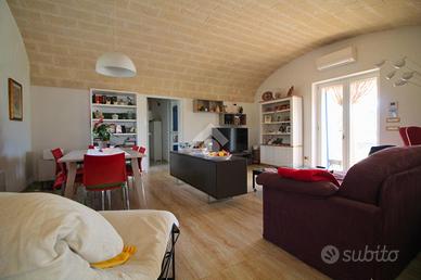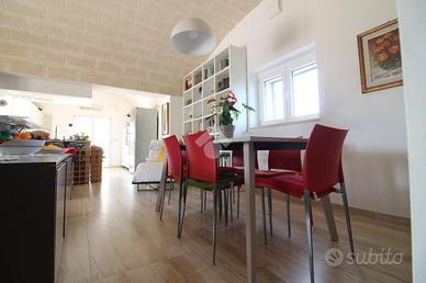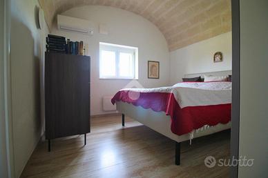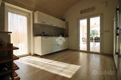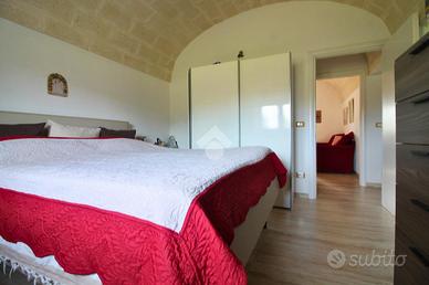 Gli interni, curati nei minimi dettagli, offrono un ampio e luminoso soggiorno, una cucina moderna e completamente accessoriata, tre comode camere da letto e due bagni completi. Un vano tecnico con ingresso esterno ospita un terzo bagno di servizio, mentre un comodo piano interrato di circa 30 mq, accessibile dall'interno, aggiunge spazio utile per deposito o altri utilizzi. Le finiture sono di alto livello: pavimento in gres porcellanato effetto travertino, infissi in PVC con doppio vetro, persiane e zanzariere, impianto di riscaldamento elettrico con radiatori e condizionatori a pompa di calore. L'immobile è inoltre dotato di pozzo artesiano, impianto di potabilizzazione dell'acqua, fossa Imhoff, cancello elettrico, impianto d'allarme collegato alla sorveglianza, telecamere, pannelli termico e fotovoltaico e antenna satellitare per internet.