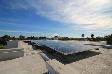 A soli 4 km dal centro di Ostuni, in direzione Carovigno, sorge questa splendida villa di nuova costruzione con caratteristiche volte a botte in pietra a vista, perfettamente in armonia con lo stile autentico della Valle d'Itria. La proprietà è immersa in un terreno di circa un ettaro, completamente recintato e impreziosito da 21 ulivi, alberi da frutto e piante ornamentali che creano un'atmosfera di quiete e bellezza mediterranea. Un curato viale d'ingresso conduce al piazzale principale, dove la villa si apre davanti alla splendida piscina di 40 mq, profonda da 1,60 a 1,70 metri, arricchita da una fontana integrata e circondata da una siepe che garantisce totale privacy.