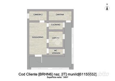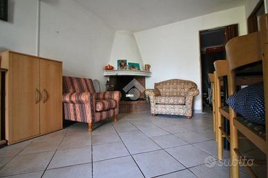 Una veranda accogliente accompagna all'ingresso dove si sviluppa in un soggiorno con cucinino, due camere da letto comode e luminose e un bagno completo di servizi.