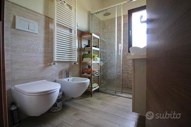La zona notte ospita tre camere da letto spaziose, pensate per garantire comfort e riservatezza. Una delle camere dispone di bagno in camera con lavanderia, mentre un secondo bagno, completo di box doccia, serve il resto dell'abitazione.