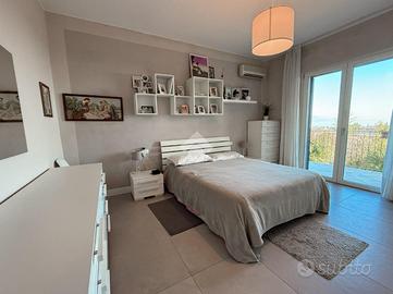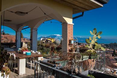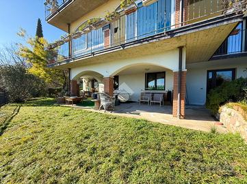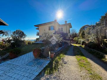 La posizione privilegiata garantisce una splendida esposizione e una vista panoramica sul lago, mentre l'ampio giardino piantumato circostante rappresenta il luogo ideale per rilassarsi e godere della tranquillità. Al piano terra-seminterrato, c'è la possibilità di creare un ulteriore appartamento, con locali attualmente adibiti a laboratorio, taverna con cucina, cantina e locale tecnico.