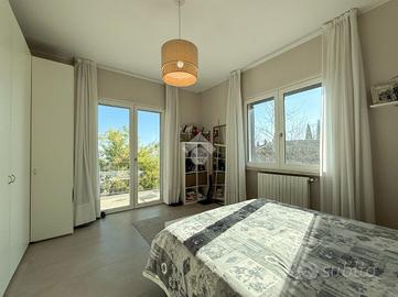 Esternamente, la villa è dotata di un locale attualmente utilizzato come magazzino, con possibilità di trasformarlo in box auto. Inoltre, sono presenti quattro posti auto coperti da tettoia.