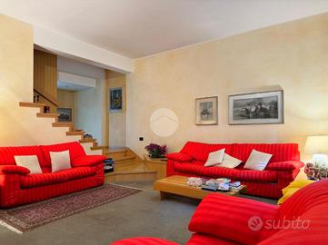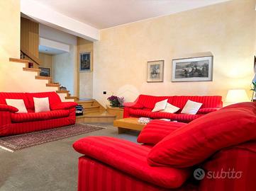 Per quel che concerne lo stato interno della villa, segnaliamo che sono stati sostituiti i serramenti nel 2015, è stata cambiata la caldaia a condensazione nel 2018, è presente l'impianto di allarme e quello di aria condizionata su entrambi i livelli, la cler del box è motorizzata ed è presente il videocitofono. La pavimentazione di tutti gli ambienti è ceramica eccetto la camera matrimoniale al piano primo, che presenta parquet.
