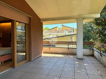GIARDINO - 700 mq. che circondano la villa, prevalentemente a verde e piantumato. E' presente l'impianto di irrigazione. Sopra al box è stata realizzata una TERRAZZA SCOPERTA di 40 mq., che arricchisce ulteriormente la godibilità dell'area esterna.