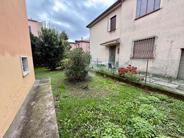 La casa è libera su quattro lati e circondata da un giardino di circa 350 mq, con accesso carrabile, parcheggio interno e un garage di proprietà.