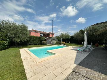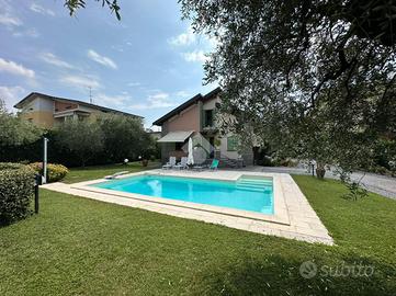 Il grande giardino che circonda la villa è piantumato con piante d'olivo e altre specie, e contornato da una siepe che garantisce la privacy. L'impianto di irrigazione rende la manutenzione del giardino facile e efficiente.