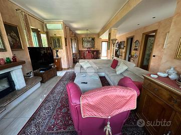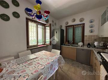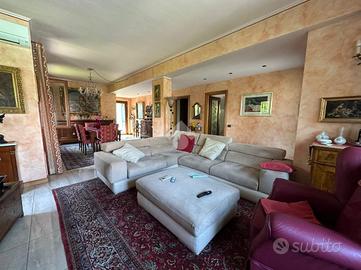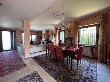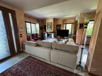 La villa si sviluppa su due livelli. Al piano terra, si accede direttamente nell'elegante soggiorno con camino a legna, che è il cuore della casa. Dal soggiorno si può accedere alla cucina abitabile, al disimpegno, al bagno di servizio e alla camera matrimoniale.