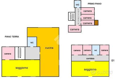 Al piano terra si ha un ingresso su un'ampio soggiorno con camino, cucina abitabile, una camera e doppi servizi.