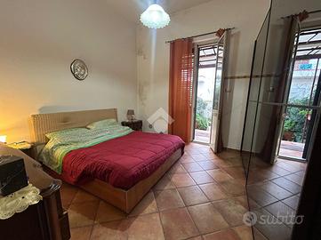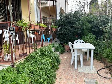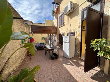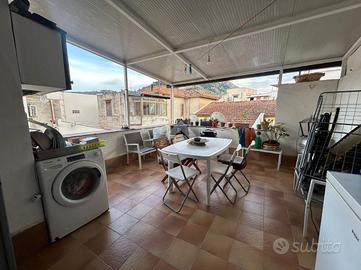 Al piano terra si ha un accesso su un terrazzo con cucina abitabile, soggiorno, una camera da letto e un servizio.