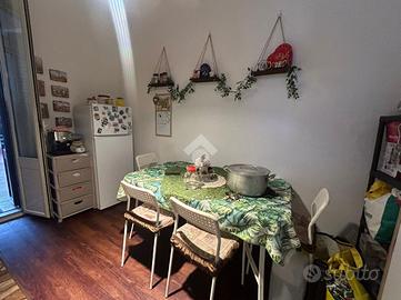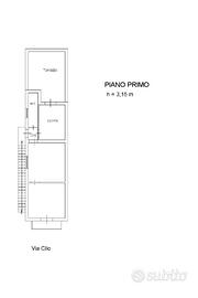Il primo piano è composto da una zona living con cucina abitabile dove si accede a un'ampio terrazzo, una camera da letto con balcone e un servizio.