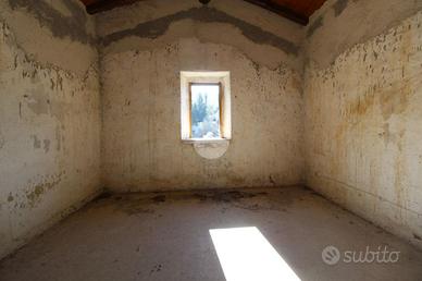 * Il piano terra di 56 mq è adibito ai locali cantine. Lo stato interno del casale è da personalizzare a seconda dei propri gusti ed esigenze. Esente da forniture sia idriche elettriche. Il punto di forza della proprietà è il tetto, completamente ristrutturato con soffitto in legno e travi a vista. Possibilità di allaccio elettrico e all'acquedotto comunale.