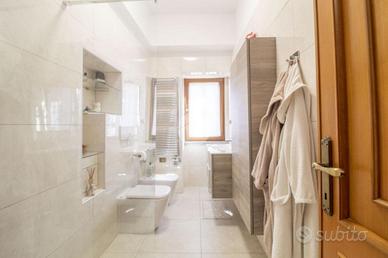 Completano la proprietà un ampio garage di 57 mq con comodo accesso carrabile e una pratica lavanderia di 9 mq con ingresso indipendente dall'esterno.