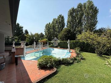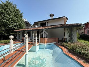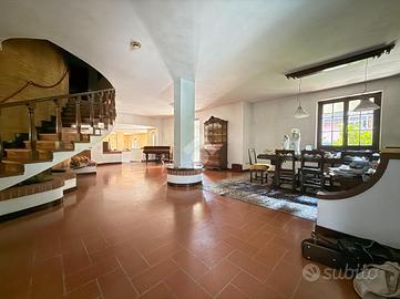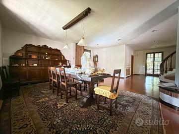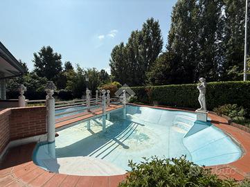 PANDINO: UNICA NEL SUO GENERE! Proponiamo in vendita una villa singola signorile di oltre 500mq! Perfetta per chi cerca spazio e comfort. La proprietà si sviluppa su due livelli e, costruita nel 1975, mantiene il fascino dell'epoca, con dettagli architettonici che ne esaltano la struttura. Gli interni hanno ambienti ben distribuiti, ideali per accogliere una famiglia numerosa o per chi desidera ampi spazi per il lavoro e il tempo libero. La disposizione permette di organizzare gli ambienti in modo funzionale, garantendo privacy e comodità. Al piano terra troviamo un doppio soggiorno di 124mq ed una sala da pranzo di 60mq oltre alla cucina abitabile di 26mq ed al bagno di servizio; al piano superiore ci sono 4 camere da letto ognuna servita dal proprio bagno, oltre ad un altro servizio ad uso comune. Mansarda open space di 90mq. La proprietà è completa di due terrazzi, cantina di 36mq, depandance di 45mq, ricovero per auto esterno coperto di 60mq, portici e pisicna interrata. La villa è circondata da un giardino di 850mq che offre un angolo di tranquillità e relax ed è dotata di aria condizionata e videocitofono. Situata in una zona residenziale, la proprietà è ben collegata ai principali servizi del comune, rendendola una scelta pratica e versatile.