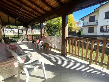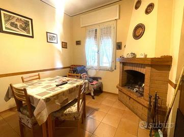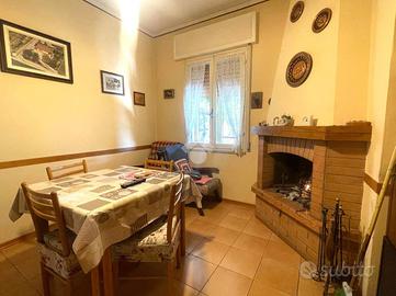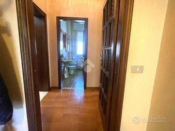 L'immobile è così composto:salendo al primo piano dalla scala esterna coperta , troviamo il terrazzo abitabile verandato, successivamente c'è l'ingresso dell'immobile che conduce al corridoio, il tinello con camino, il cucinotto finestrato, una sala molto grande dotato di portafinestra che conduce al balcone e il ripostiglio.