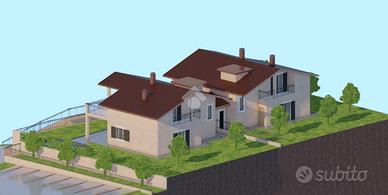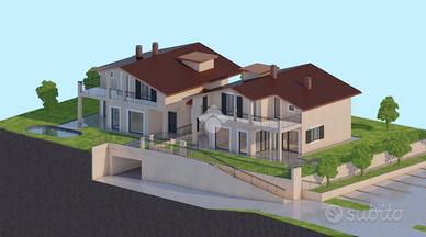 Il primo piano ospita due camere matrimoniali con cabine armadio, un bagno e un terrazzo panoramico, perfetto per momenti di relax. La villa è dotata di riscaldamento a pavimento, pannelli fotovoltaici, un ampio box auto triplo e possibilità di personalizzazione degli interni.