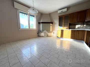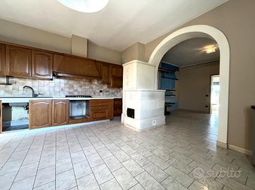 Salendo le scale esterne che ci conducono al piano rialzato, varcata la soglia d'ingresso veniamo accolti da una luminosa zona giorno-cucina separata dalla sala da pranzo. Percorrendo il disimpegno che ci conduce alla zona notte troviamo due camere da letto di circa 15mq ciascuna ,una terza stanza/studio ed un bagno con vasca.