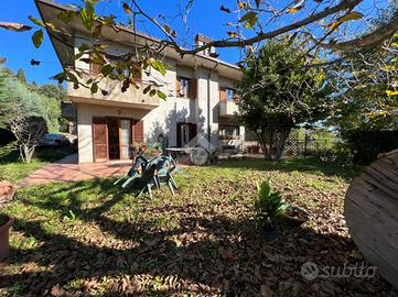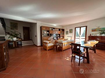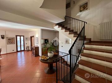Perugia-Via della Treggia In posizione collinare e dominante con un bellissimo panorama, a soli 4 chilometri dal centro storico , vi proponiamo in vendita una Villa Singola su tre livelli di 440 mq con un ampio parco di 1500mq. Entrando dal cancello pedonale e per le auto, troviamo un comodo ingresso al piano terra che da accesso all 'ampia zona giorno e al bilocale indipendente, dall'abitazione principale, ideale per eventuali genitori o come studio. La zona giorno al piano terra è composta da un ampio dismpegno, salone con accesso al giardino e ad un terrazzo abitabile, cucina abitabile con accesso al giardino e un bagno; da un ampia scala aperta si accede al piano primo dove troviamo 4 camere da letto di cui tre can balcone e una con terrazzo abitabile e tre bagni; dalla stessa scala si scende al piano terra-seminterrato dove troviamo un altro salone con accesso a terrazzo abitabile, un bagno, una lavanderia e due vani (camera-studio); completa la propietà un garage di 30 mq, una cantina , vari ripostigli e un pozzo con abbondante acqua . Costruito negli anni '90 pur mantenedo le finiture dell'epoca si presenta in Ottimo Stato La Villa è ideale per una grande famiglia e per chi ama vivere in relax , lontano dai rumori della città, ma nello stesso tempo molto vicino