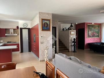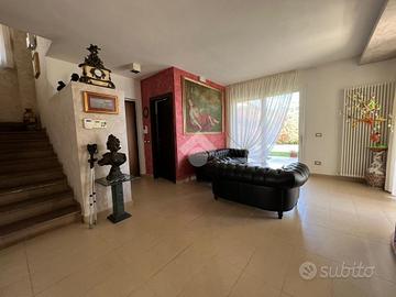 Perugia-Montelaguardia zona In zona collinare, residenziale e panoramica, ma nello stesso tempo a pochi minuti di auto dal centro della città, vi proponiamo una splendida Villa Singola su tre livelli, costruita nel 2005, con ampia corte in parte adibita a giardino completamente recintato. La Villa si presenta in Ottimo Stato, con tutti gli impianti rivisti , un sistema di aria condizionata e di video sorveglianza. Al piano terra, con accesso dal giardino, entriamo nel salone doppio con cucina a vista ed accesso diretto al portico, dispensa e bagno; al primo piano ci sono 4 camere con parquet, di cui una con bagno e accesso a terrazzo dal quale si gode una magnifica vista Presente un secondo bagno al piano. al piano interrato invece, da un lato terra , troviamo un ampio garage di 50mq con lavanderia e ampio vano con bagno oltre a essere prevista una predisposizione per creare angolo cottura. completa la propietà un rimessa auto con tre posti. Tutti gli ambienti sono finestrati , dando così all'immobile luminosità e ariosità e permettendo di vivere a pieno la casa. Sicuramente è una soluzione ideale per chi vuole passare sereni momenti in famiglia