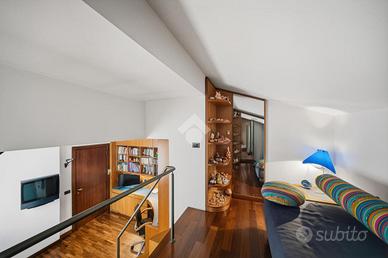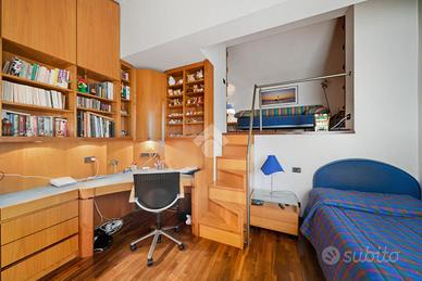 * All'ultimo piano, abbiamo uno studio/camera da letto con vetrata che si affaccia sul soggiorno, una camera singola con soppalco e due ripostigli. A questo piano si può accedere anche dall'esterno, tramite una scala che porta in giardino.