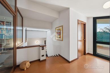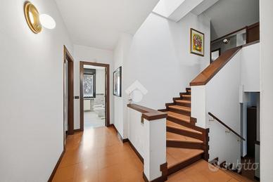 * Salendo mezza rampa di scale, troviamo la camera padronale dotata di guardaroba e bagno privato, una seconda camera sempre di ampie dimensioni ed un altro bagno. Essendo una casa costruita in collina, anche questo piano ha accesso diretto al giardino.