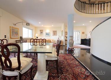 Al piano terra, l'ingresso apre sulla vista di una splendida scalinata semicircolare. Il salone doppio è ampio e luminoso, con angolo bar e accesso sul delizioso terrazzo con vista mare.