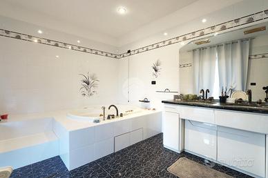 Il primo piano dispone di ulteriori tre camere da letto matrimoniali, ognuna di esse con uscita sul balcone con affaccio sul giardino, doppi servizi, lavanderia con terrazzino privato.