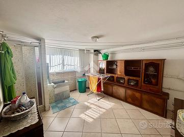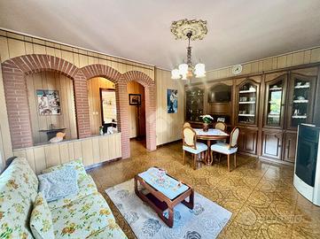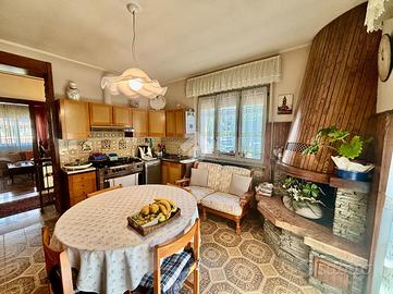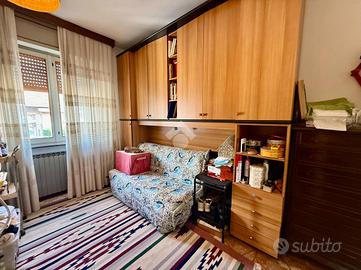 Al piano terra si sviluppa il primo appartamento, con zona giorno composta da soggiorno e sala da pranzo, oltre alla cucina separata. Un corridoio che percorre l'intera unità abitativa conduce al servizio finestrato, dotato di vasca. La zona notte comprende una luminosa camera matrimoniale, una camera doppia e una camera singola, attualmente adibita a ripostiglio.