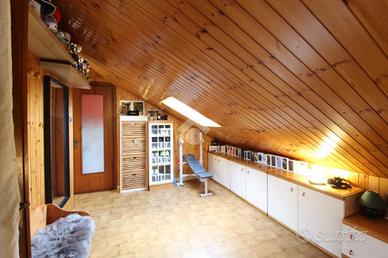 Villa libera su tre lati in zona Parucco. Edificata alla fine degli anni ottanta è caratterizzata dall'ampia metratura al piano terra con ingresso living sulla sala con camino; cucina abitabile con accesso al portico e la zona notte con due camere da letto, che hanno accesso al terrazzo. Il bagno al piano terra è con finestra ed è dotato di vasca e di doccia. Tramite scala in muratura si accede al piano sottotetto, molto luminoso grazie a velux e finestre; completamente rifinito con ampia zona soggiorno/studio, una camera da letto con cabina armadio ed il bagno con doccia. La taverna è dotata di forno a legna. Sono presenti lavanderia e cantina. Il box auto è doppio. Il cortile privato con accesso da passo carraio, con possibilità di parcheggiare più auto, ed il giardino completano la proprietà.