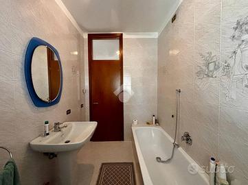 Scendendo il piano interrato si compone di una sala lavanderiacaldaia, una cantina, il terzo bagno finestrato con doccia e il garage doppio.