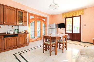 Al piano terra, l'ingresso si apre su un ampio e luminoso soggiorno con pavimenti in marmo. Da qui si accede alla spaziosa cucina abitabile, con bagno finestrato dotato di box doccia e portico esterno, perfetto per pranzi e cene all'aperto. Attraverso una scalinata in legno si sale per un comodo locale sottotetto rifinito, ampio e luminoso.