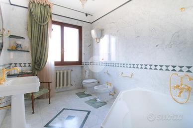 Questa residenza, curata nei minimi dettagli, unisce finiture di pregio e materiali ricercati, dai pavimenti in marmo alle scale in legno e pietra naturale, fino alla raffinata scelta delle essenze verdi del giardino.