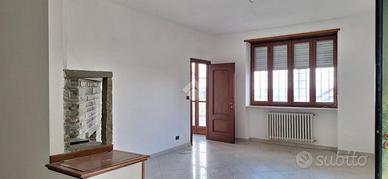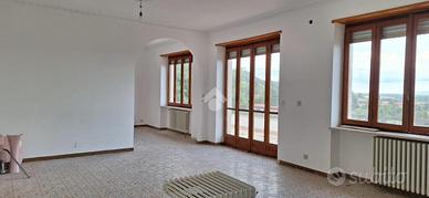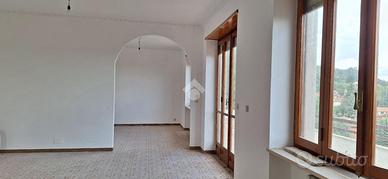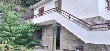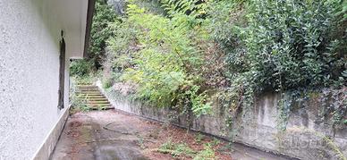 Composto da due appartamenti, una magnifica scala doppia in stile anni 60 conduce al piano terra, con ingresso living nella cucina e nel salone doppio, fornito di camino, collegato al disimpegno il quale gode della luce naturale e della vista fornita dalla porta-finestra doppia che affaccia sulla valle. la zona notte è composta da due ampie camere da letto e da un bagno finestrato fornito sia di vasca che di doccia. Completa il piano un ampio sgabuzzino.