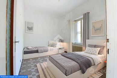 La zona notte ospita due camere da letto una matrimoniale e una singola di medie dimensioni oltre a un bagno finestrato con box doccia.