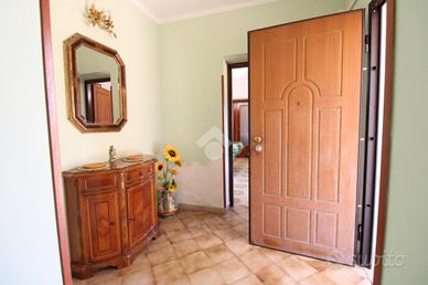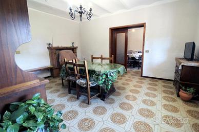 Un ampio ingresso, salone con camino, cucina abitabile con dispensa, due camere da letto matrimoniali e bagno.