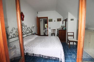 L'abitazione si sviluppa su due livelli. Piano terra: ingresso, cucina, ampio salone con camino e bagno; sia la cucina che il salone danno apertura sul giardino. Piano primo: quattro camere da letto e secondo bagno. Balconi panoramici valorizzano ulteriormente gli ambienti e offrono piacevoli affacci sul verde.