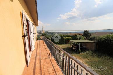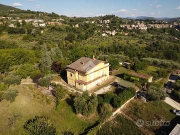 Il casale è circondato da 2 ettari di terreno recintato, con noceto in produzione, uliveto e uno splendido giardino con piante ornamentali. La struttura si sviluppa su più livelli: al piano terra troviamo un primo appartamento composto da ampio soggiorno con camino, due camere e bagno. Al piano primo invece c'è un ingresso, soggiorno, sala da pranzo, cucinotto, tre camere da letto, due bagni e ampio balcone. Collegata internamente troviamo una mansarda abitabile rifinita composta da zona giorno due camere da letto e bagno. Il grande terrazzo panoramico permette di godere dello spazio esterno e vedere dall'alto le zone circostanti.