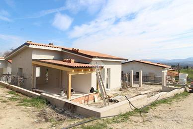 In prossimità del centro del paese di Casali, frazione di Poggio Nativo, ad un solo chilometro dalla Via Salaria ed a 15 minuti da Passo Corese e dalla fermata del treno, proponiamo in vendita 5 ville indipendenti. Le ville, di 117 mq, si sviluppano su unico livello con portico, serra solare, salone con angolo cottura, camera matrimoniale con servizi privati con doccia, cameretta, camera doppia e bagno con doccia. Ogni villa dispone di un giardino privato, recintato, di 200 mq circa con 2 posti auto assegnati ed impianto di irrigazione e di illuminazione esterna. Le strutture, che ricadranno in classe energetica A, saranno dotate di panelli fotovoltaici da 3 kw con batteria di accumulo da 5 kw, pannello solare per l'acqua calda sanitaria, infissi monoblocco in PVC con tapparelle elettriche. Possibilità di scelta dei rivestimenti interni/esterni. La zona in cui sorgeranno le ville offre un bellissimo panorama ed un'ottima esposizione, ma soprattutto dista solo un km dalla via Salaria, arteria principale di collegamento tra Rieti e Roma. Prezzi a partire da € 200.000,00
