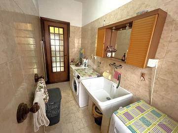 Il piano superiore accoglie un luminoso salone molto ampio, perfetto per momenti di relax e convivialità. La cucina, abitabile e funzionale, si affaccia su un ampio terrazzo, ideale per pranzi e cene all'aperto. Il piano dispone inoltre di due camere da letto, una delle quali con accesso al balcone, e due bagni ben rifiniti.