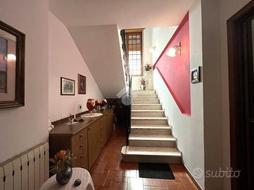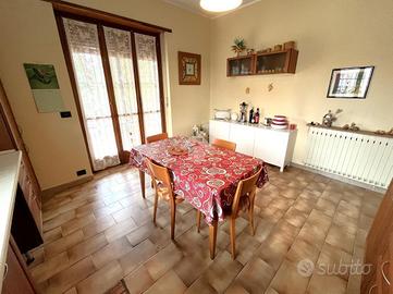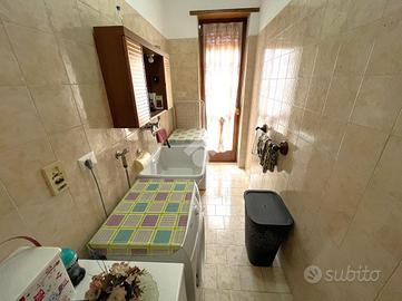 La cucina, abitabile e funzionale, si affaccia su un ampio terrazzo, ideale per pranzi e cene all'aperto. Il piano dispone inoltre di due camere da letto, una delle quali con accesso al balcone, e due bagni ben rifiniti.