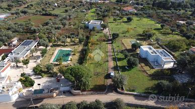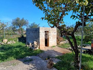 La proprietà comprende un villino di circa 95 mq, composto da una cucina-soggiorno, due camere matrimoniali, un corridoio e un bagno con un ripostiglio sopraelevato.
