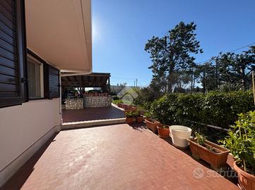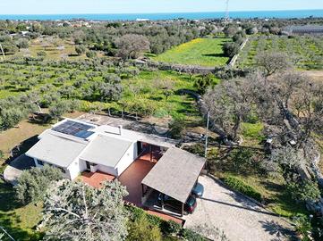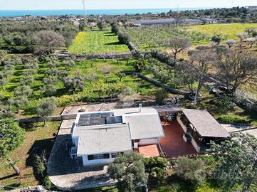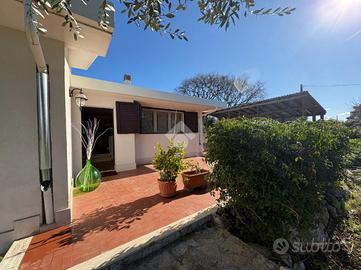 Situata in una suggestiva posizione collinare a breve distanza dalla piazza del Cristo, in direzione Commisso, questa raffinata villa indipendente rappresenta un perfetto equilibrio tra modernità e immersione nella natura. L'abitazione, che si sviluppa interamente su un unico livello per una superficie di circa 95 mq, è stata oggetto di un profondo intervento di ristrutturazione completato tra il 2021 e il 2022, che ne ha elevato lo standard abitativo e l'efficienza energetica. L'ingresso conduce a un'accogliente zona giorno, il cuore pulsante della casa, dove il calore di un moderno caminetto si sposa con la funzionalità di un pratico cucinino separato. La zona notte è studiata per garantire la massima privacy e comfort, offrendo tre camere da letto luminose e due bagni ben rifiniti, di cui uno dotato di finestra e box doccia. La cura nei dettagli tecnici emerge nelle rifiniture di pregio, come gli infissi in alluminio a taglio termico con apertura ad anta ribalta e l'installazione di un cappotto termico esterno, che assicurano un isolamento termo-acustico d'eccellenza. All'esterno, la proprietà si estende su un vasto terreno di circa 9.800 mq coltivato a uliveto, un'oasi di pace tipicamente mediterranea. La vivibilità degli spazi aperti è garantita da un'ampia area pavimentata che circonda il fabbricato e da due ampie tettoie, ideali per il relax all'ombra. Completano le pertinenze una centrale termica dedicata, un locale deposito distaccato dal corpo principale e un terrazzo di copertura non praticabile. Sotto il profilo tecnologico, l'immobile è all'avanguardia grazie ai lavori eseguiti con il Superbonus 110%, che includono un impianto fotovoltaico di ultima generazione e un sistema di climatizzazione e riscaldamento tramite fan coil a inverter. Per quanto riguarda l'approvvigionamento idrico, la villa dispone di riserve alimentabili tramite sorgente o autocisterna, con la possibilità di allacciamento alla rete rurale, mentre lo scarico fognario è affid