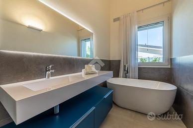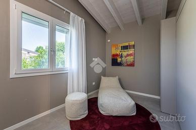 In zona residenziale di Ponti sul Mincio, piccolo borgo collinare dotato dei principali servizi, a soli quattro chilometri dal centro di Peschiera del Garda, proponiamo una soluzione abitativa indipendente su un unico piano totalmente personalizzabile, sia nella disposizione degli spazi interni sia nelle finiture. Il progetto originario della villa prevede una zona giorno di circa quaranta metri quadrati, tre camere da letto, due bagni, una lavanderia ed una comoda autorimessa, oltre ad un posto auto esterno. E' possibile richiedere la realizzazione del giardino piantumato e della piscina, oltre a numerose altre varianti al capitolato basate sulle proprie esigenze, quali ad esempio impianto domotico, aspirazione centralizzata, colonnina di ricarica per auto. La villa verrà realizzata in classe energetica A4, alimentata interamente ad elettricità, dotata di pannelli fotovoltaici, ben isolata a livello acustico e disposta interamente al piano terra, al fine di offrire un'esperienza abitativa di grande qualità e comodità. Finiture di lusso realizzate all'interno di un metodo costruttivo collaudato e di ottimo livello.