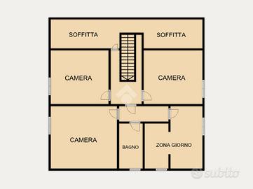 2P: ingresso, angolo cottura con tinello, tre camere da letto, bagno finestrato ed ampio ripostiglio nel sottoscala;