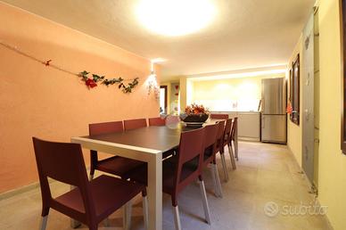 La soluzione abitativa si sviluppa interamente al piano terra con i suoi sette locali ben distribuiti, mentre al piano inferiore presenzia un ulteriore livello in cui vi sono il garage ed i locali aggiuntivi dell'immobile.